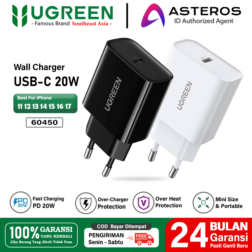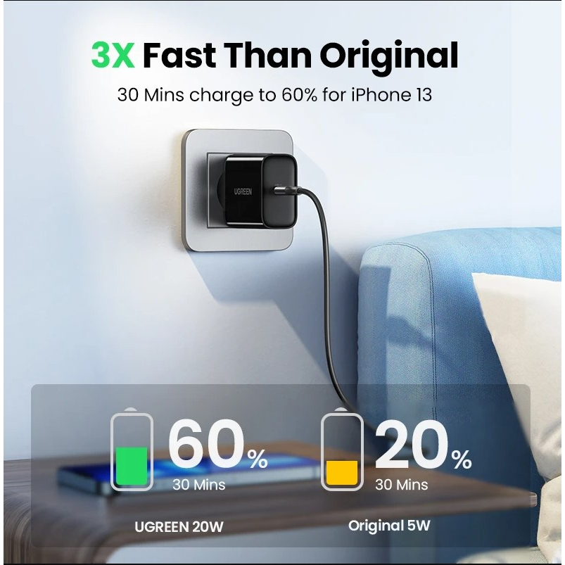 UGREEN Kepala Charger iPhone 11 12 13 14 15 16 17 Fast Charging 20W 30W 45W Pengisian Daya Cepat 30 Menit