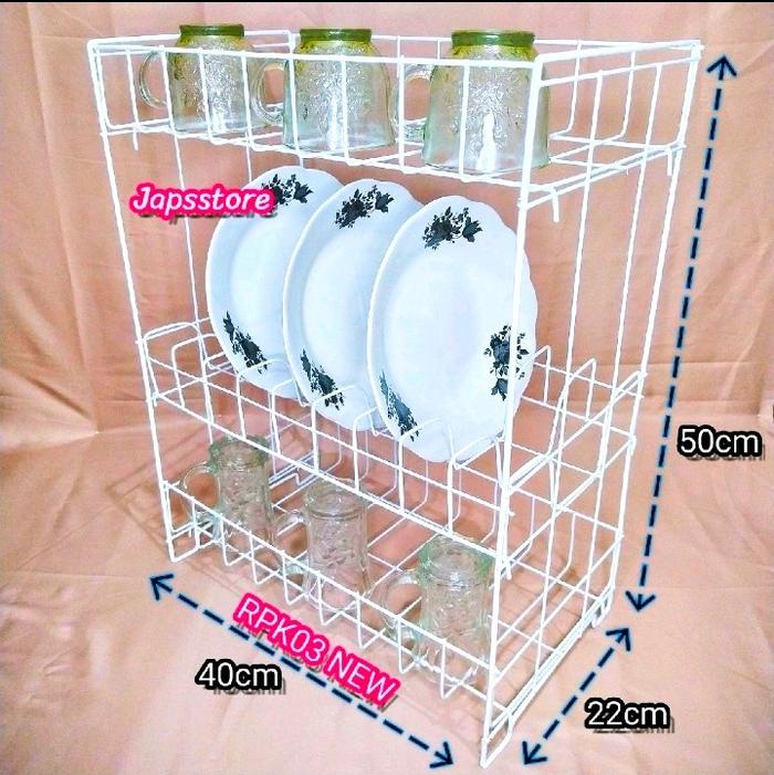 Rak Piring Dan Gelas 3 Susun, Besi Kuat Anti Karat Lapis Cat Vinyl Rpl03New Bisa Bayar - Rpl02 New