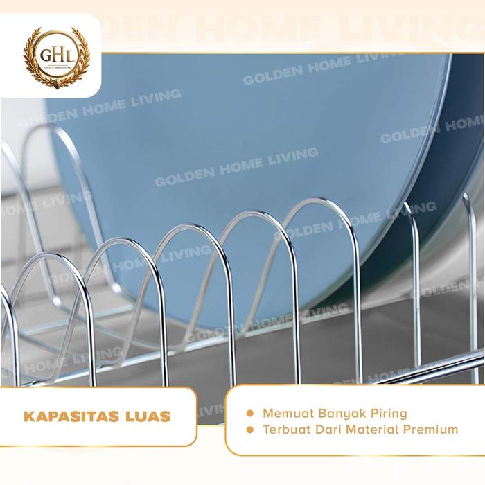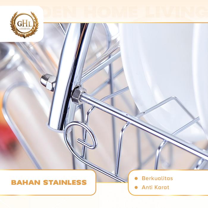 Ghl - Rak Piring Stainless Steel Minimalis 2 Susun Dilengkapai Gantungan Gelas & Peralatan Makan Besi - Rak Piring Stain