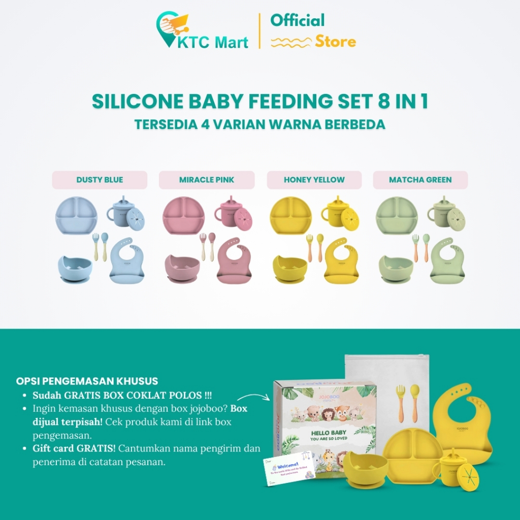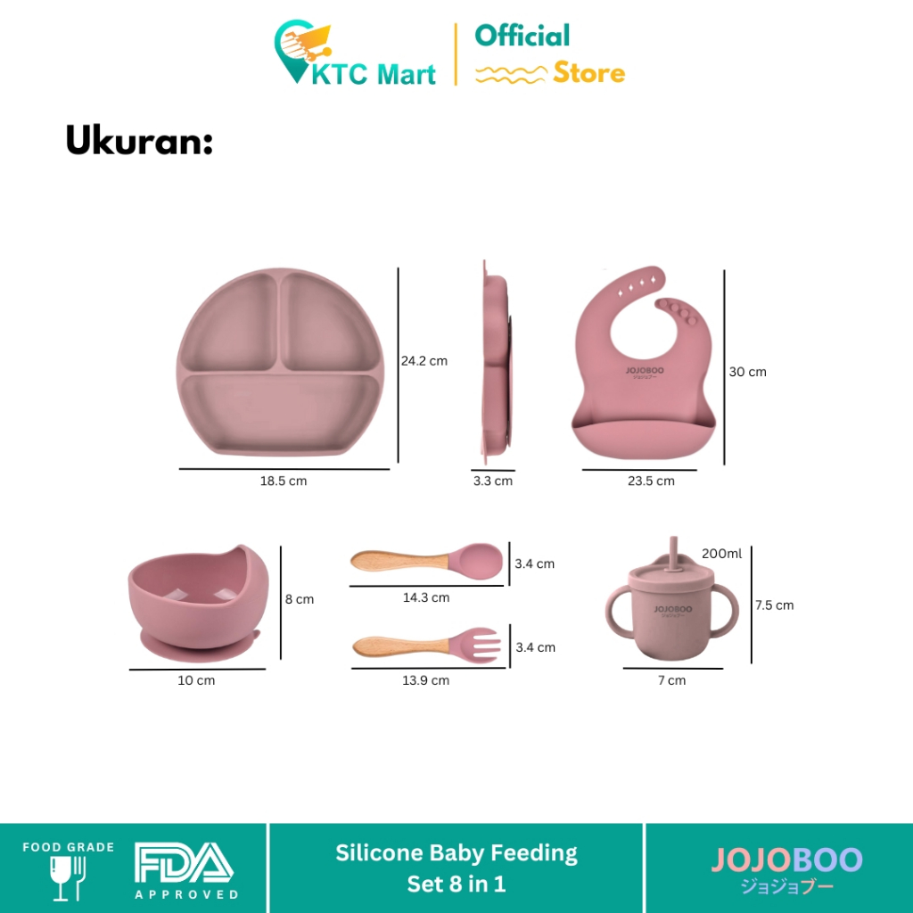 JOJOBOO - 8 in 1 Peralatan Makan Bayi Set Silicon Suction Food Grade Baby Feeding Set