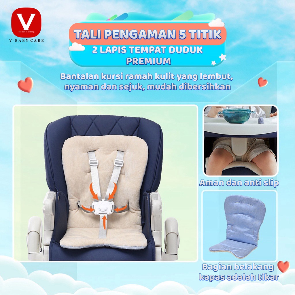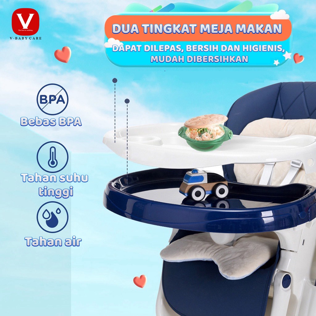 V-BABY CARE Kursi Makan Bayi/ Bayi Rumah Tangga Anak Multifungsi Meja Makan/ Kursi makan Lipat Duduk dan Berbaring Safet