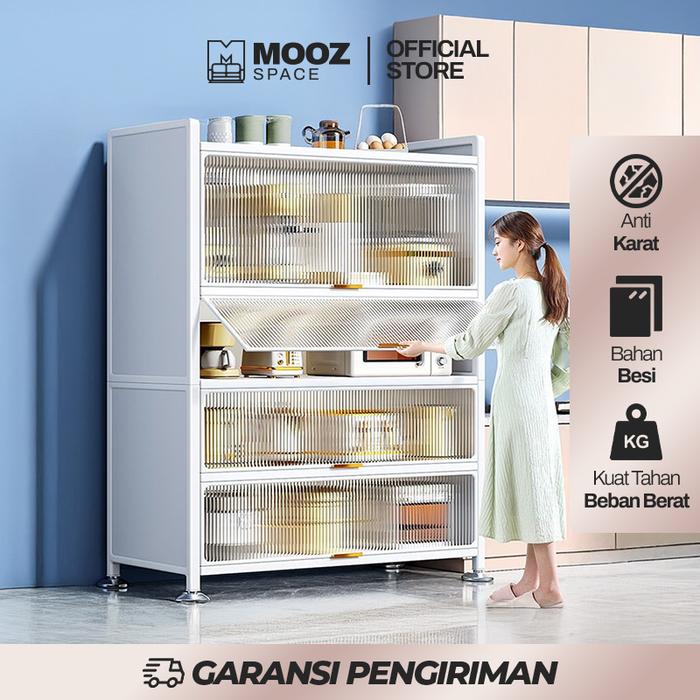 Best Seller Lemari Dapur Aluminium Rak Piring Besi Serbaguna – Rak Piring Dapur Bertutup Kokoh - 3Tngkt-Putih100