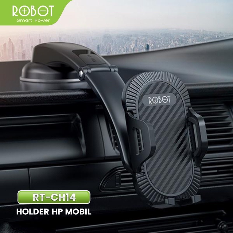 ROBOT Car Holder RT-CH14 Holder Mobil Universal Dashboard Suction Cup Automatic Lock Black Garansi Original Resmi