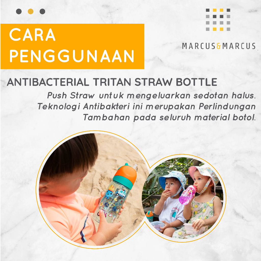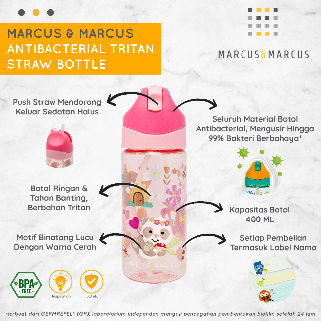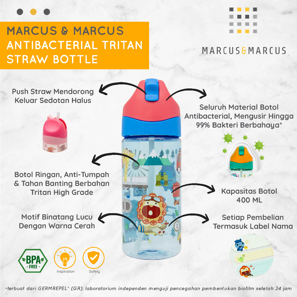 Marcus & Marcus Antibacterial Tritan Straw Bottle 400ml