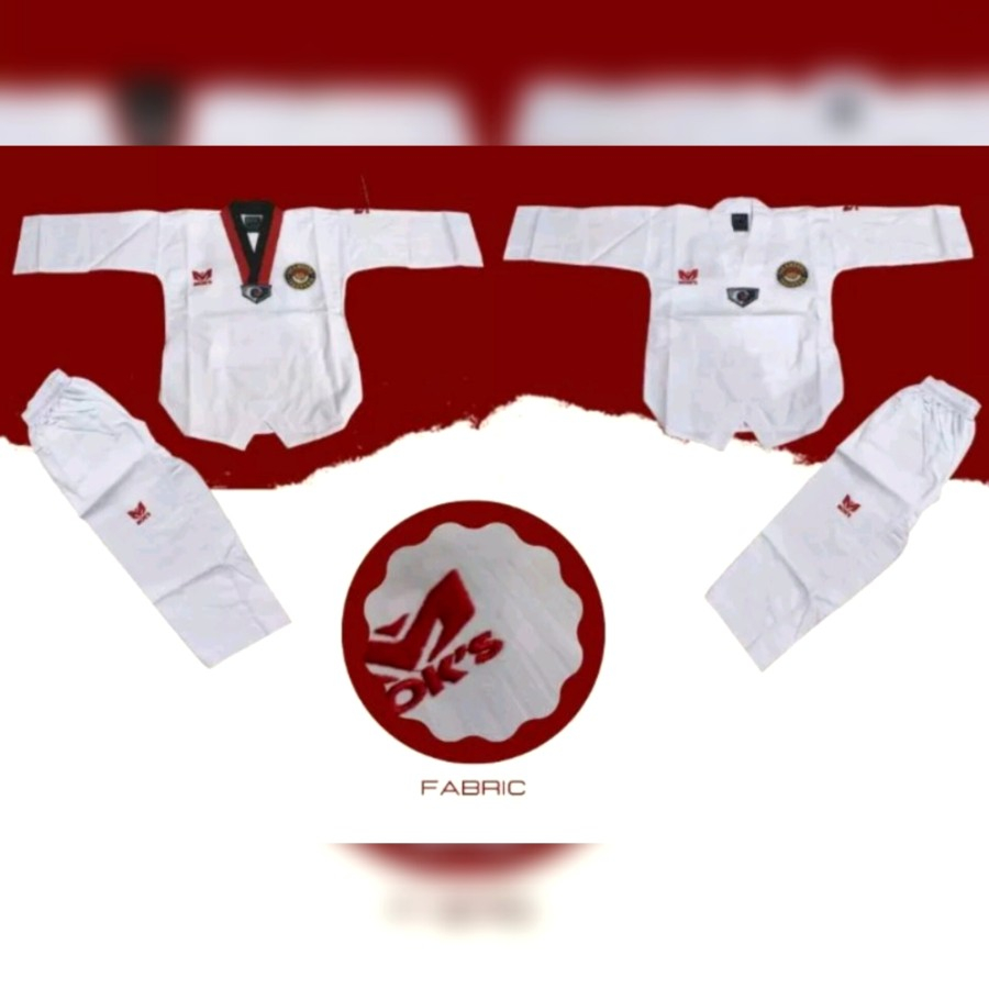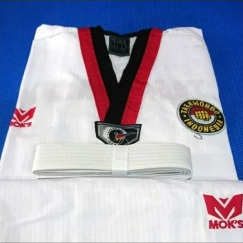 Baju seragam Taekwondo Moks/dobok MOKS pemula kerah PUTIH & MERAH HITAM