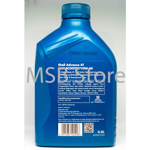 Oli Motor Matic Kualitas Tinggi 4T Shell Advance AX7 Scooter 10W - 40 0.8 Liter