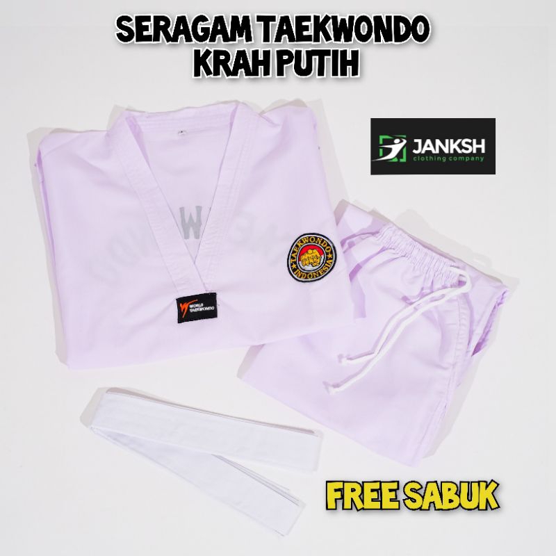 SERAGAM TAEKWONDO KRAH PUTIH (FREE SABUK PUTIH) / BAJU TAEKWONDO