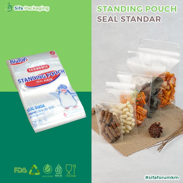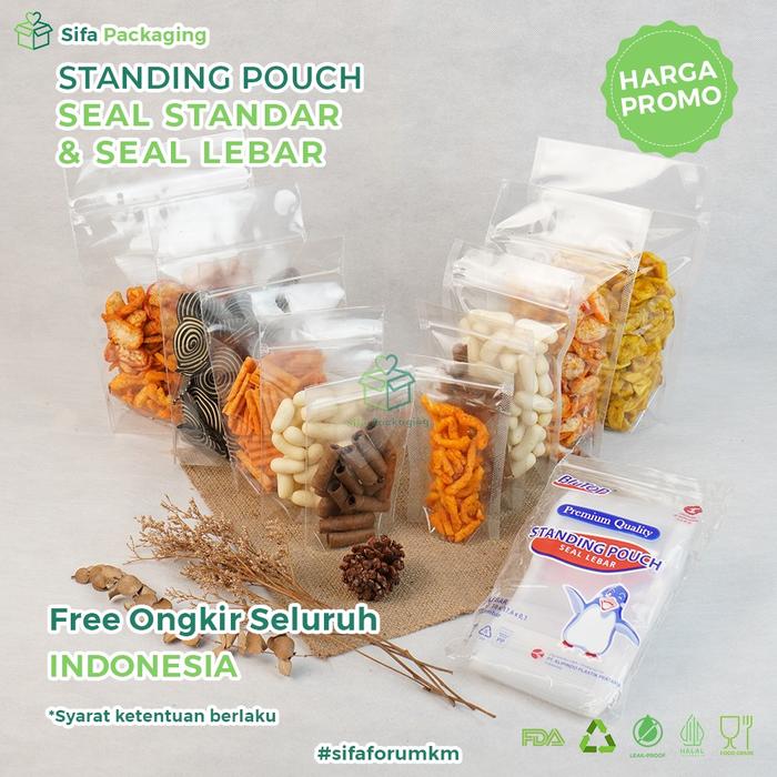 Standing Pouch Bening Ziplock Transparan Plastik Klip Blutop Pinguin Seal Lebar Seal Standar 9X15 10X17,5 12X20 14X22 16