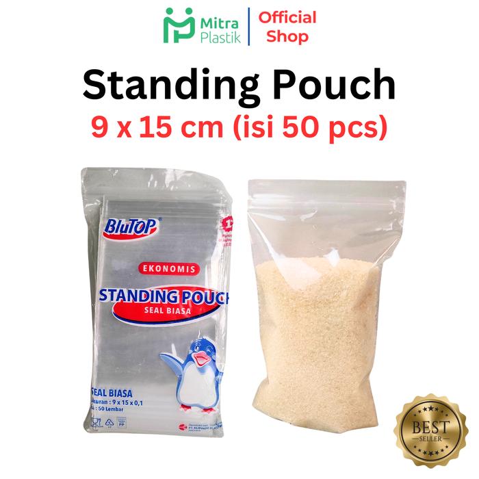 Standing Pouch 9X15 Isi 50 Pcs Plastik Klip Berdiri 9 X 15 Single Double Seal Biasa Seal Lebar Snack Beras Cemilan Basre