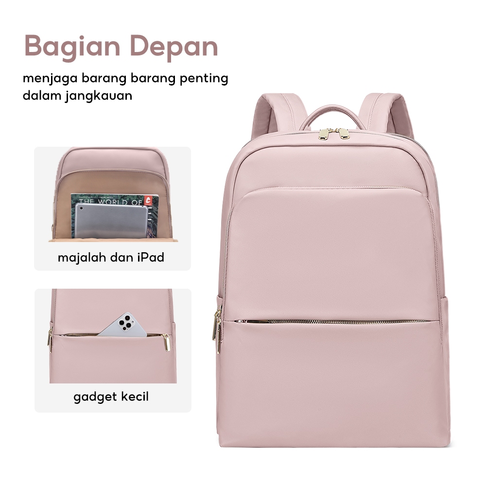 FULL DESIGN Kinsley Tas Ransel Wanita Laptop 14 Inci Minimalis Anti Air, Desain Slim Backpack Pelajar Travel Kantor