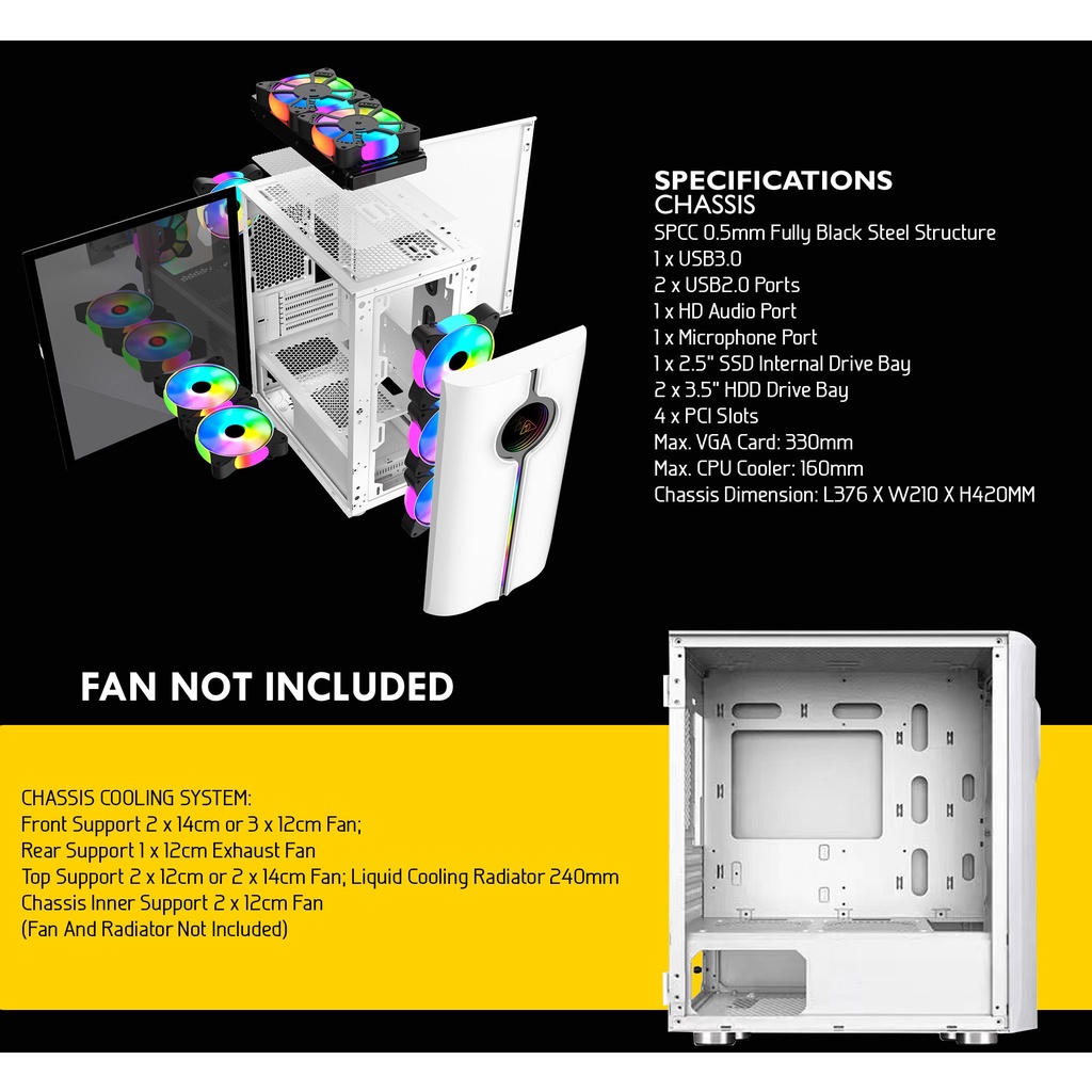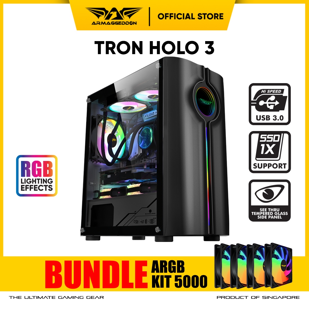 Casing PC Gaming Armaggeddon Tron Holo 3 Mini ATX - Micro ATX | RGB Holographic Front Panel
