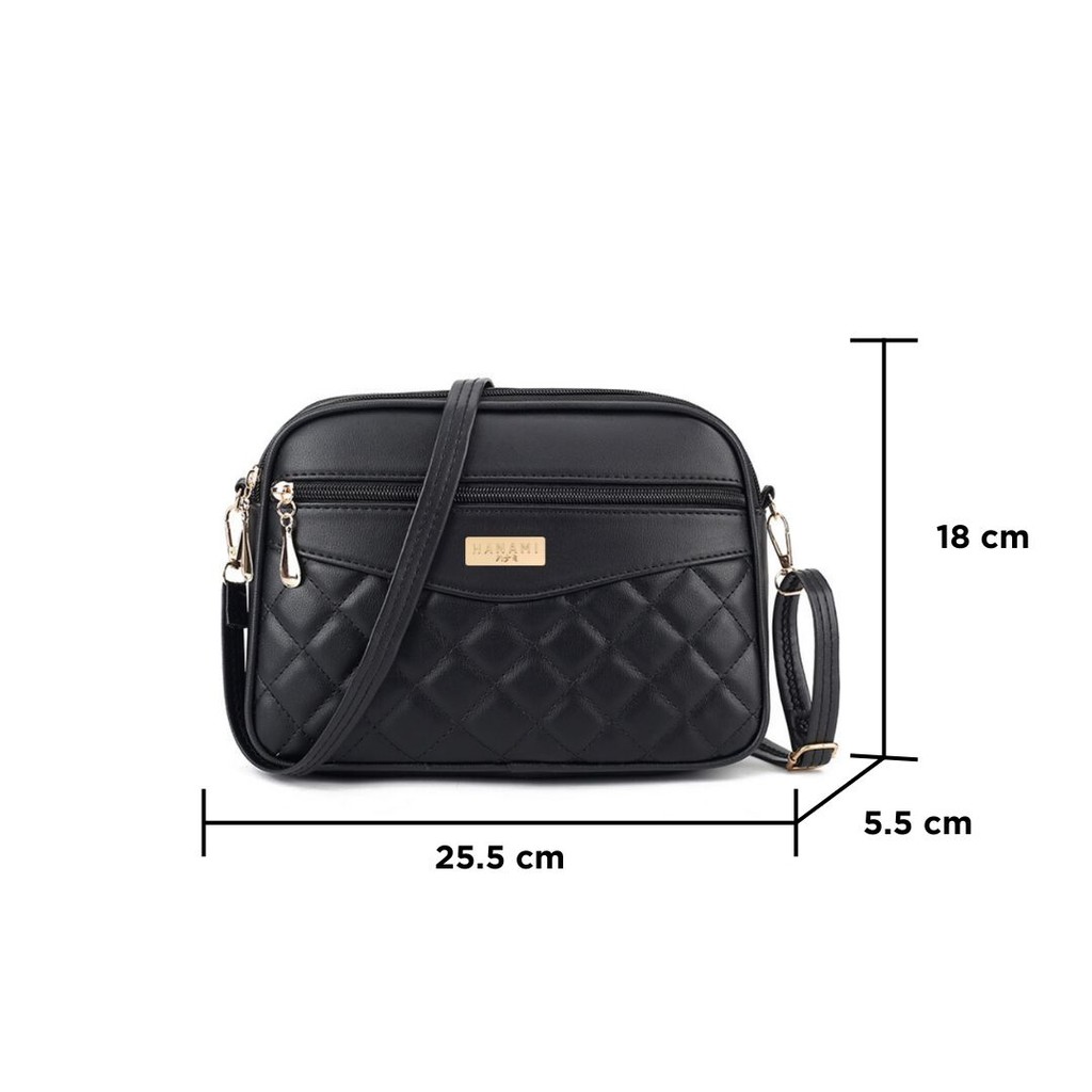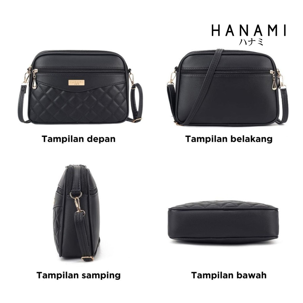 HANAMI Tas Selempang Wanita Kekinian Kulit Hitam Sling Bag Cewek Zefia Fashion Casual Simple