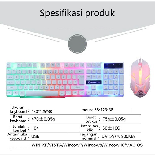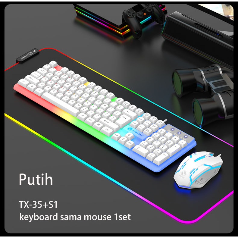 HUWEI keyboard komputer Kombo Keyboard dan Mouse Gaming Keyboard dan Mouse Nirkabel dengan Lampu RGB Cahaya / Termasuk Mouse dan Keyboard - Keyboard Mekanikal