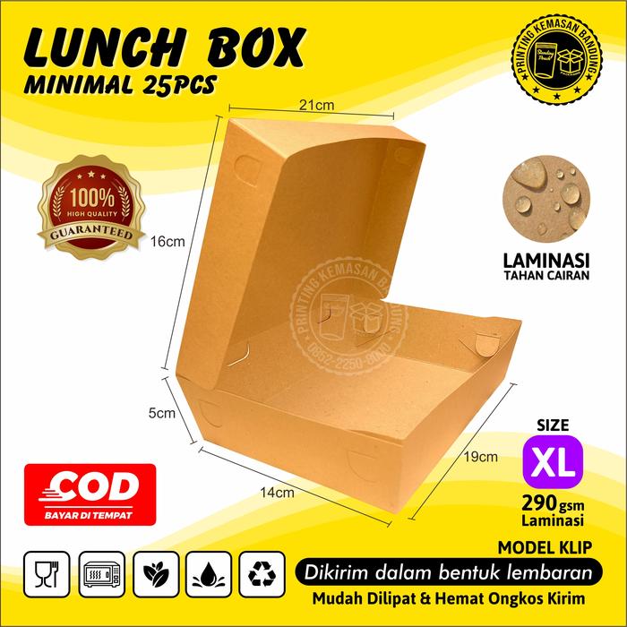 25 Pcs Kotak Makan Kertas Paper Lunch Box Makanan Kraft Grosir 290Gsm - Ukuran L, Per 25 Pcs