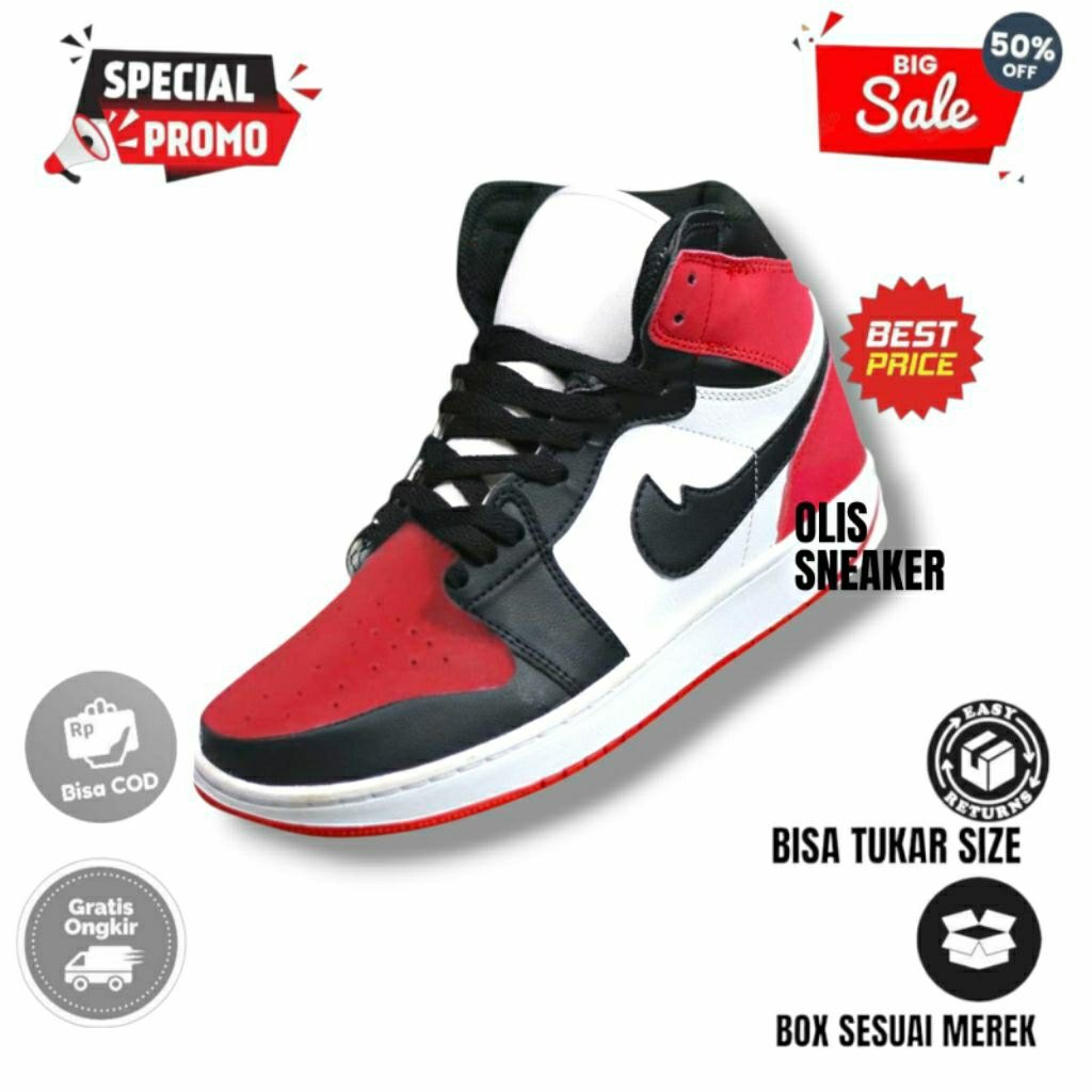 Sepatu Sneaker Kasual Srt Pria Wanita JRDN Red Black White Unisex Ukuran 36 37 38 39 40 41 42 43 44