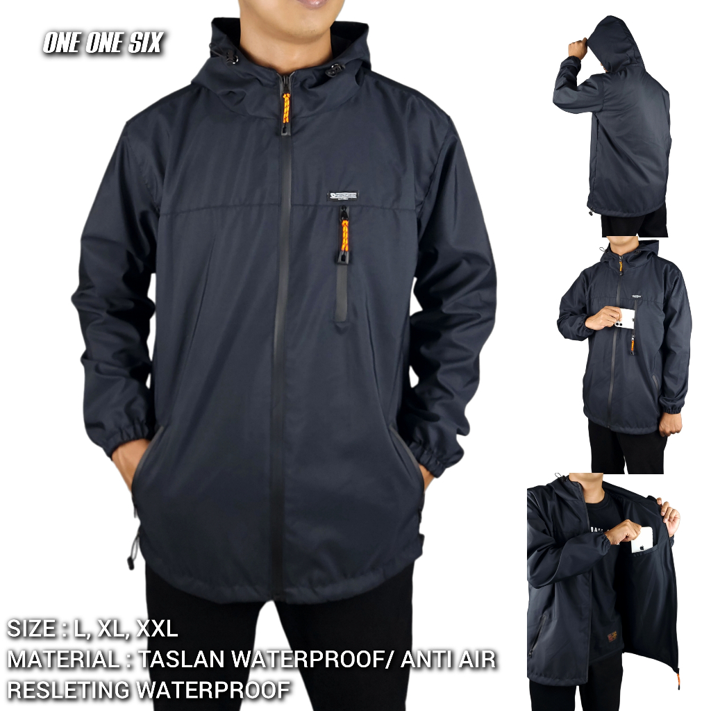 JAKET OUTDOOR WATERPROOF PRIA TASLAN JN PREMIUM JACKET HOODIE GUNUNG PARASUT ANTI AIR TRAVELING HIKING DEWASA