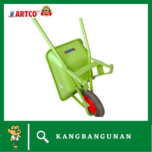 Artco Ori Gerobak Sorong Dorong Pasir Cor Original Hijau Banana Green 4 Kubik Kapasitas 75X50X25Cm Dimensi 14 Inch Roda
