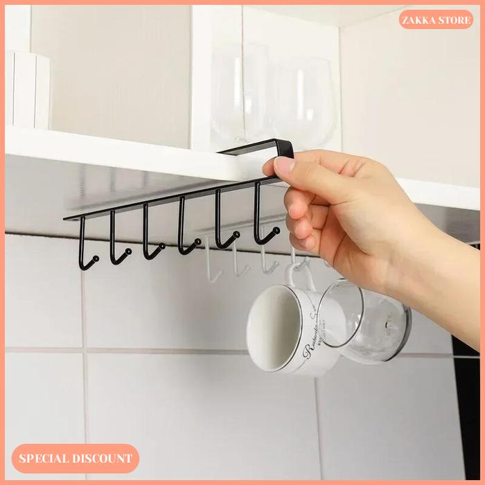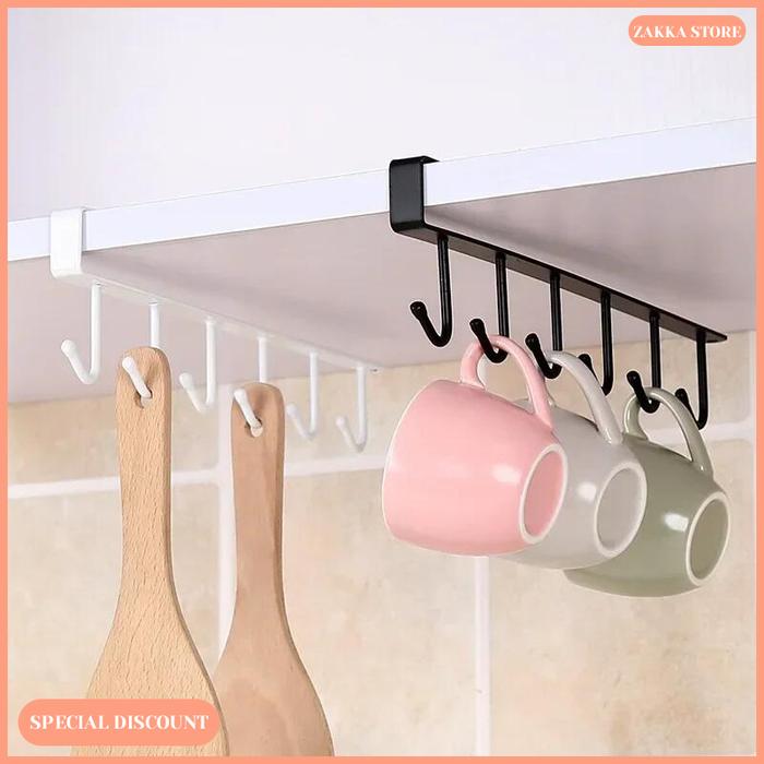 Zakka Store Rak Gantungan 6 Kait / Kabinet Rak Bawah / Rak Cangkir / Rak Gantung Dapur Dan Rumah - Hitam