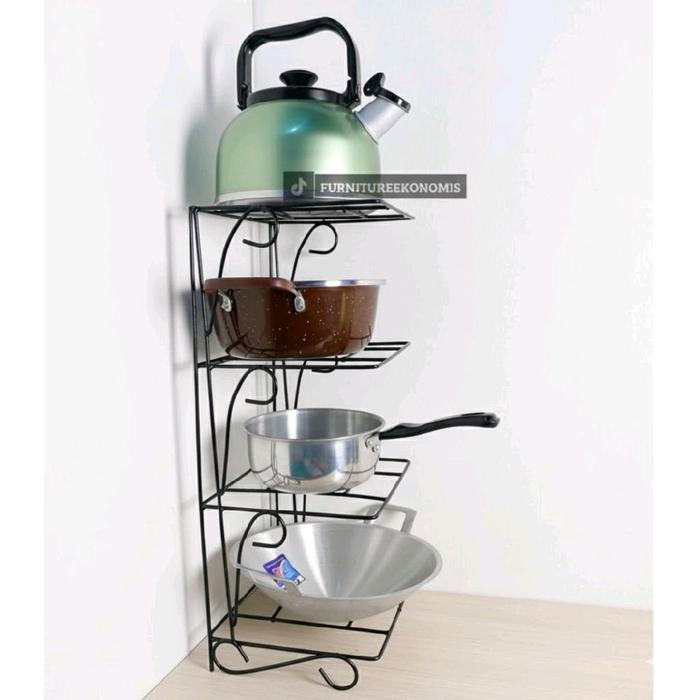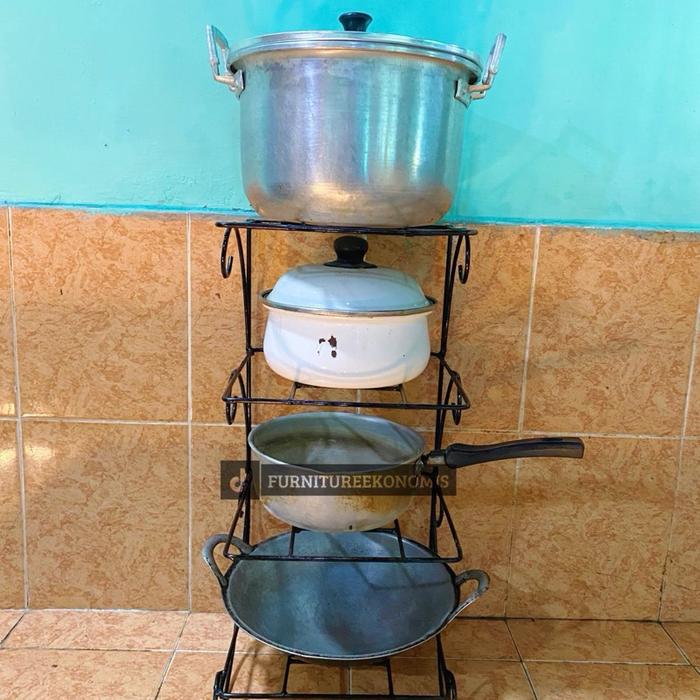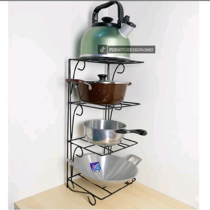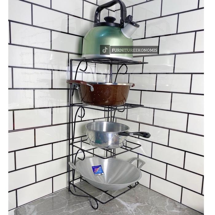 Rak Panci Susun 4/3/2 Tingkat Bawah Kolong Wastafle Dapur Rak Penyimpanan Dapur Rak Wajan Bahan Besi Sni Putih - Susun 3