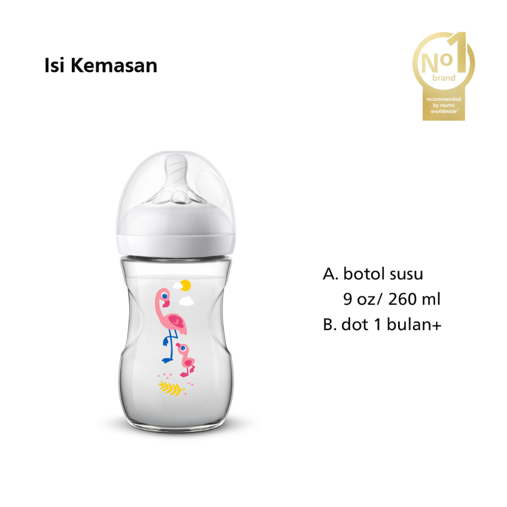 Philips Avent Natural Bottle Single 9Oz Flamingo SCF627/41 Botol Bayi