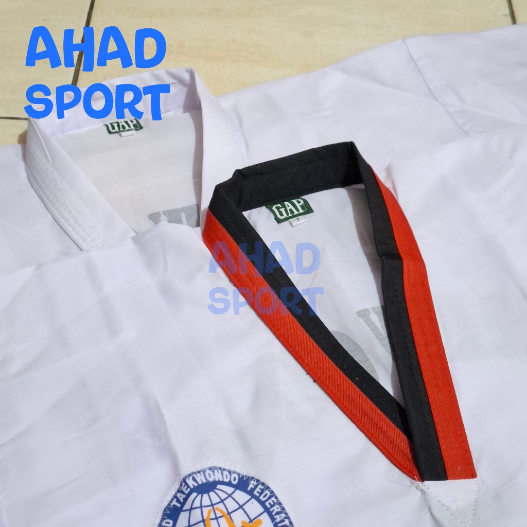 Baju Taekwondo Drill Kerah Merah Hitam Putih