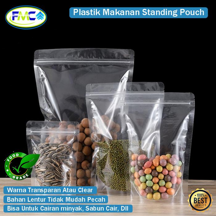 Standing Pouch Clear Plastik Klip Bening Kemasan Plastik Klip Berdiri Sealer Makanan Ziplock Plastik Klip Murah Kecil Se
