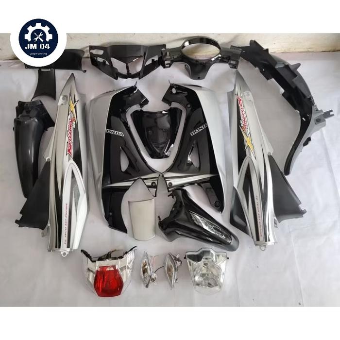Cover Body Full Halus Kasar+1Set Reflektor Depan Belakang Motor Honda Karisma X 125 Plus Striping Warna Hitam slver