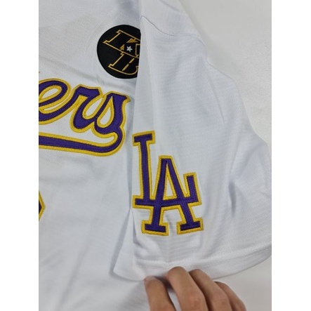 Baju Jersey Baseball MLB Kobe Bryant LA Dodgers X LA Lakers Putih Ungu