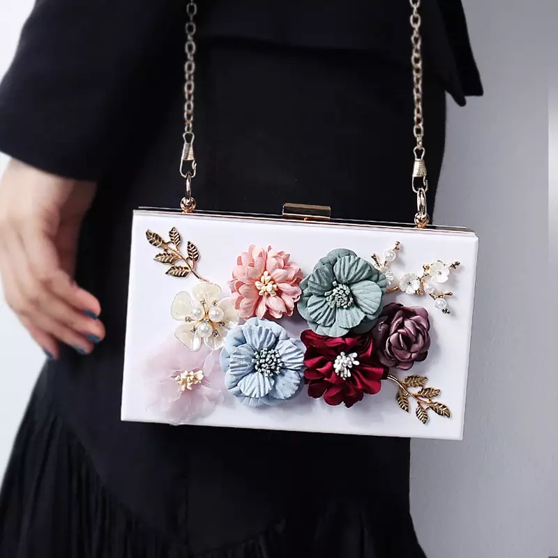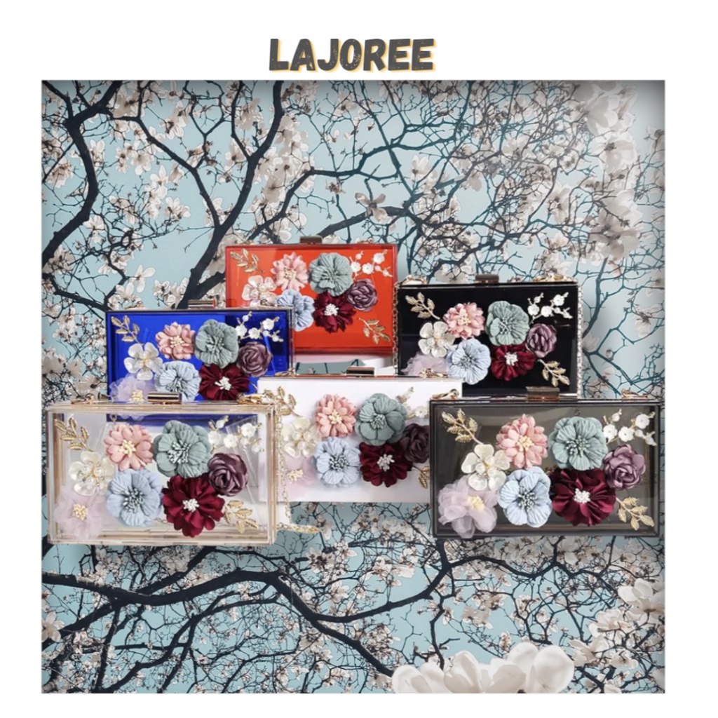 LAJOREE Flower Acrylic Clutch Tas Pesta Wanita Akrlilik Clutchbag Kondangan Ibu Ibu Cantik Tali Rantai Mewah Sling Bag S
