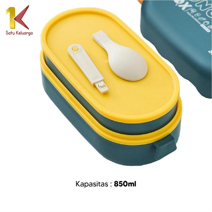 Sk C780 Lunch Box Bento Set 850Ml Kotak Bekal Makan Siang Free Sendok - Biru Teal
