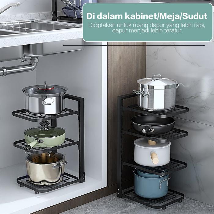 Etife Rak Susun Bawah Wastafel Rak Tingkat Dan Beroda Rak Penyimpanan Adjustable Peralatan Rumah Dapur - Hitam 2 Lantai
