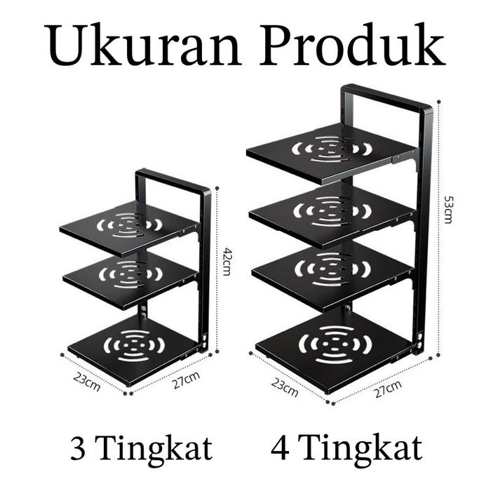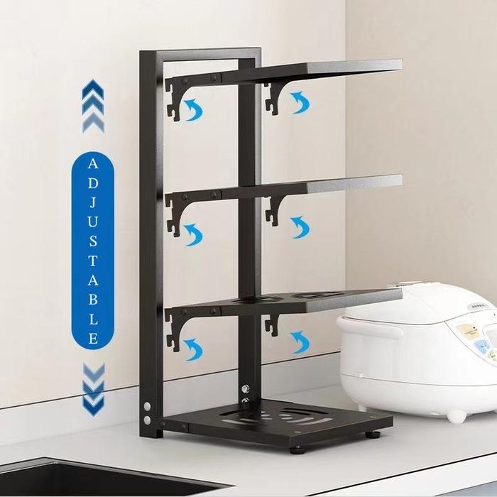 Es Rak Panci Bawah Wastafel Susun Stainless Tahan Karat Adjustable Putih & Hitam - Putih, 3 Tingkat