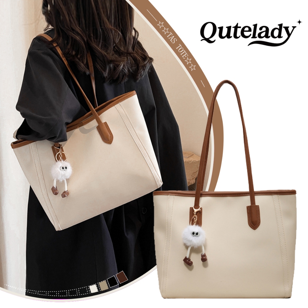 QUTELADY Tas Tote Wanita Jinjing Bahu Kekinian - Totebag Kulit Asli Tas Selempang Wanita KA-B1001