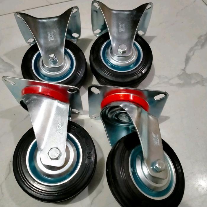 Roda Karet 4 Inchi Satu Set 4Pcs Rem Hidup Mati - Hidup Mati 4