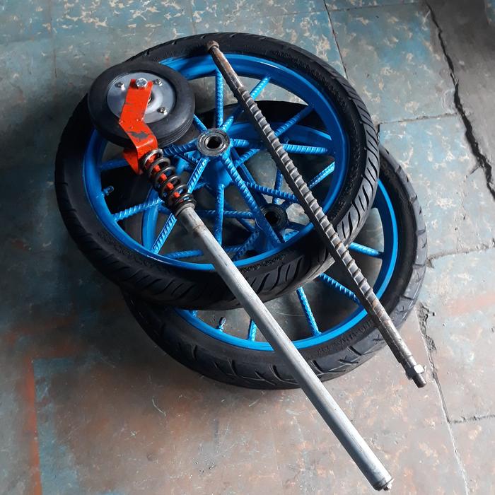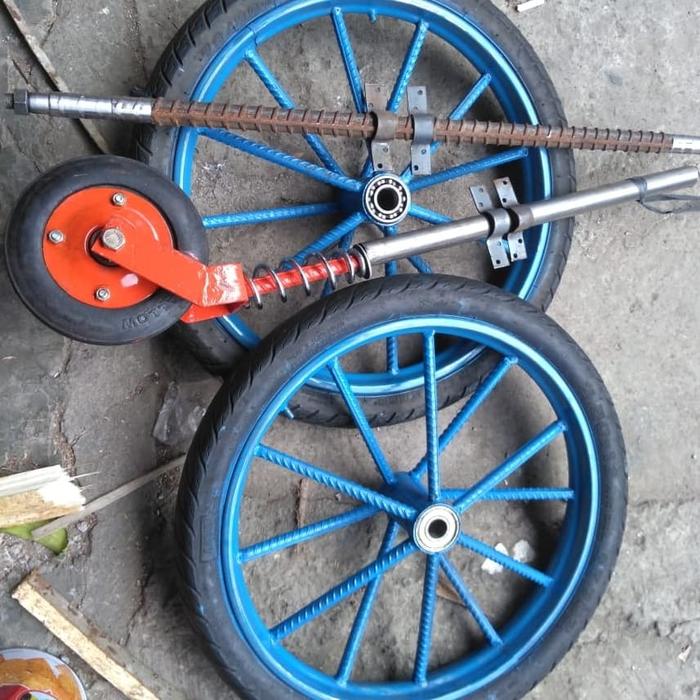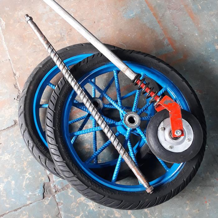 Roda Gerobak Dorong Velg 17Inch Ruji Besi 6 Besar & Roda Gletrek 1Set - Lebar Gerobak 40Cm Panjang As 65Cm
