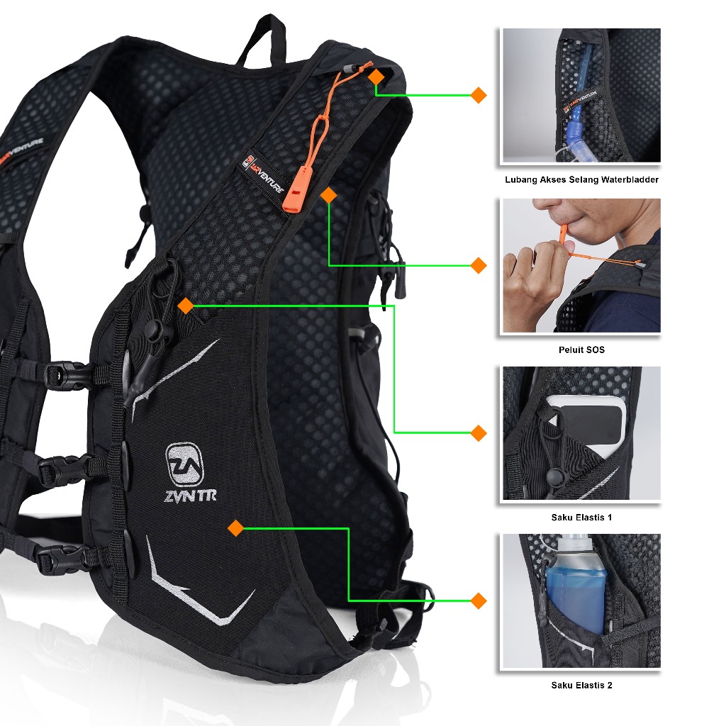 Zarventure Hydropack Ultralight Vest Tas Trail Running Vest Trail 8 Liter Raida