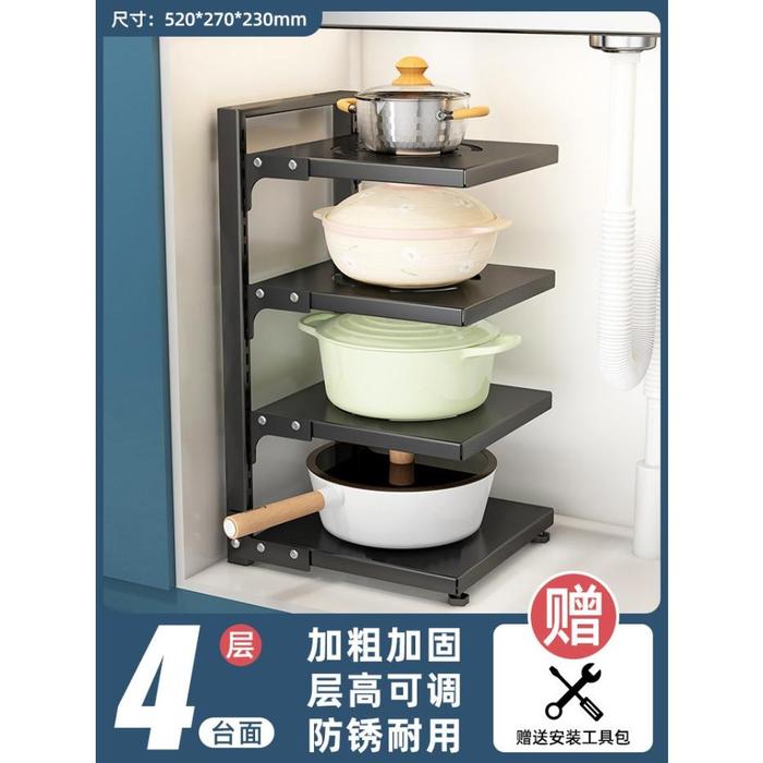 Rak Panci Rak Peralatan Rumah Dapur Susun Rak Panci Bawah Wastefel - Tingkat 4