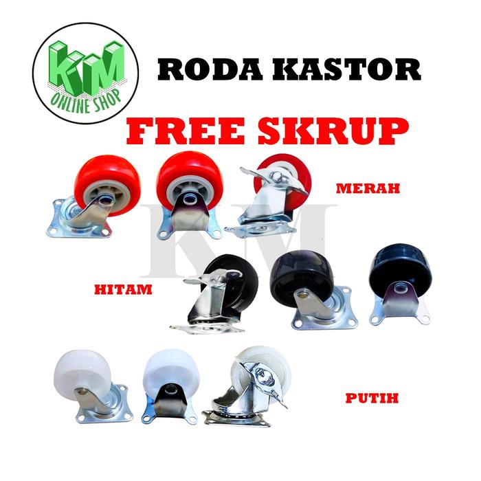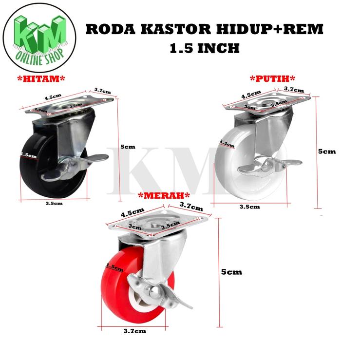 Roda Kastor Plate Pvc Nylon 1.5 Inchi Hidup, Mati, Hidup + Rem Troly - 1.5'' Mati, Merah