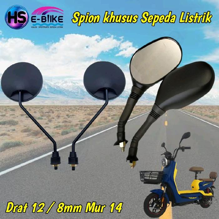 Kaca Spion Sepeda Listrik Universal Drat 12 / 8M Bulat & Oval Outdoor - Bulat Biasa