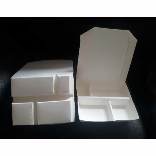 Lunnch Box Sekat 4 / Paper Lunch Box / Food Kontainer / Tempat Makanan - Putih Polos