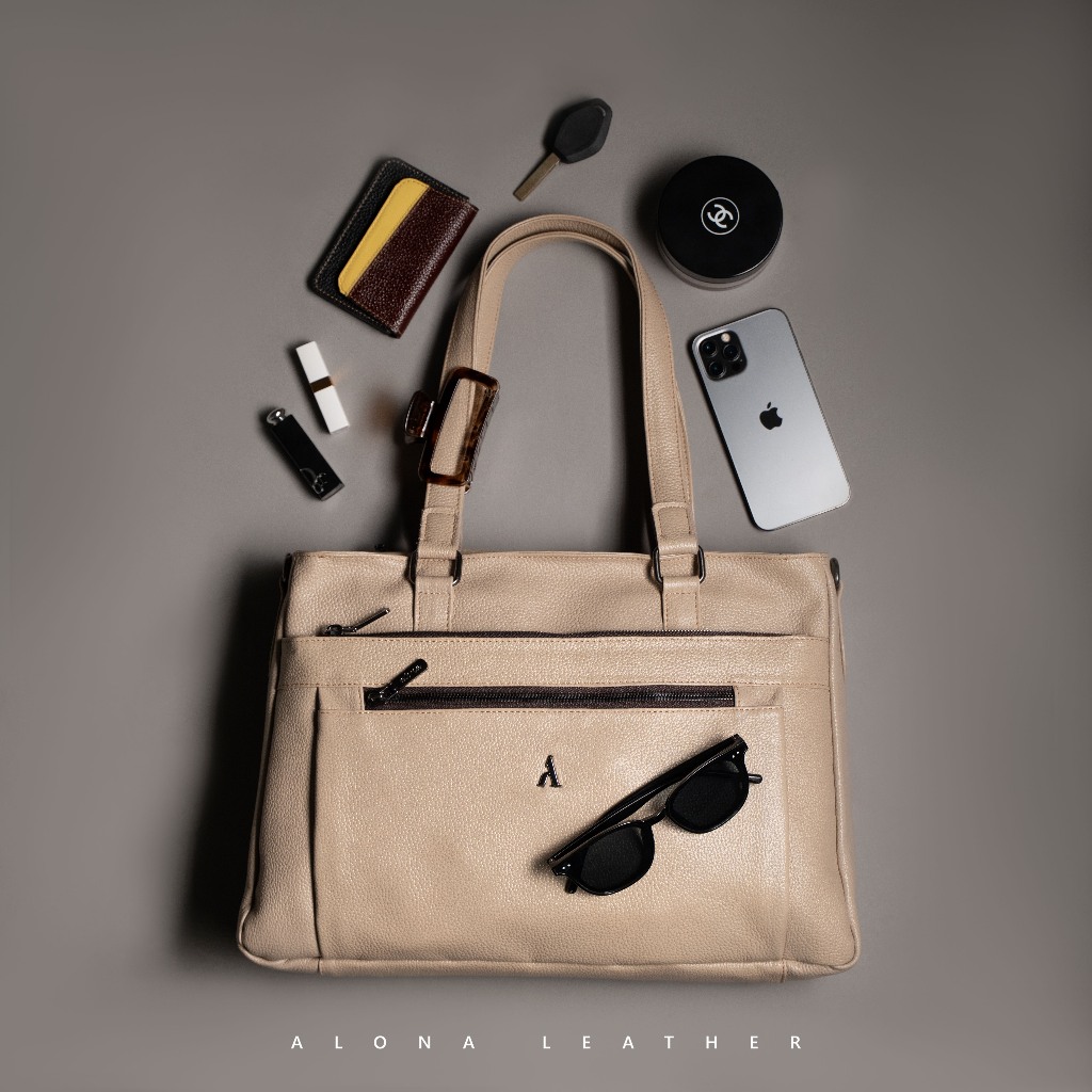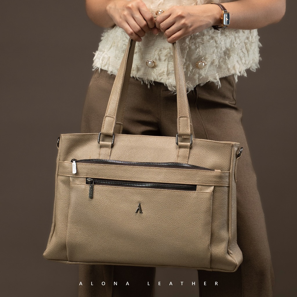 Alona Leather Lovata Totebag - Tas Laptop Wanita Kulit Sapi Asli Free Random Gift & Tali Selempang
