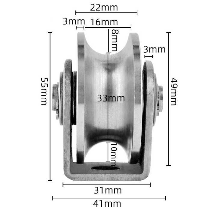 304 Stainless Steel Heavy Duty Roda U Groove Pulley Bearing Detachable Grooved Wheel