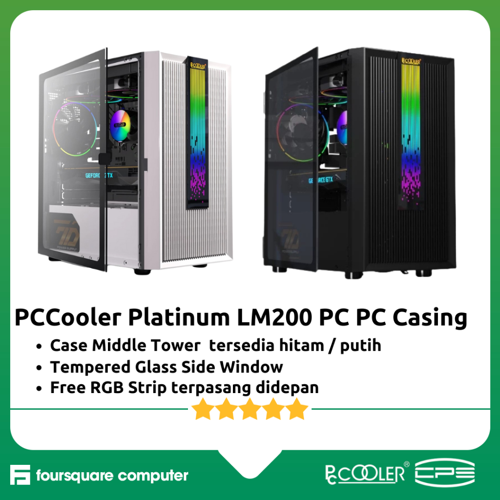 PCCooler Platinum LM200 Black White | Casing CPU Komputer Gaming Micro ATX Tempered Glass Hitam Putih