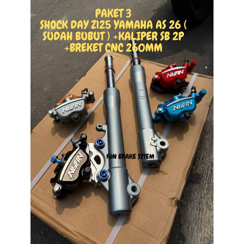 PAKET 3 SHOCK DAY Z125 BUBUT AS 26 + BREKET CNC JUPZ 260MM + KALIPER SAMURAI 2P NISSIN IMRT