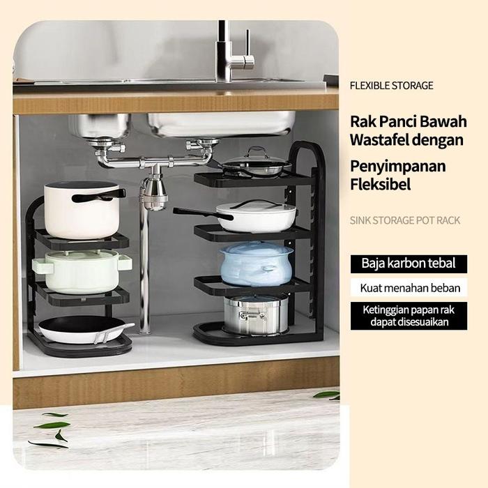 Wastafel Dapur Di Bawah Rak Rak Pot Kabinet Atas Rak Panci Multi Fungsi Rak Panci/Fungsi 2/3/4Tingkat Rak Multifungsi -