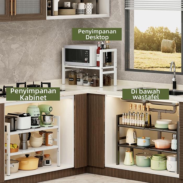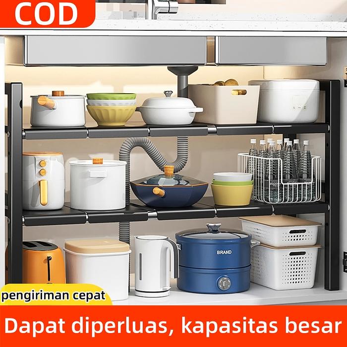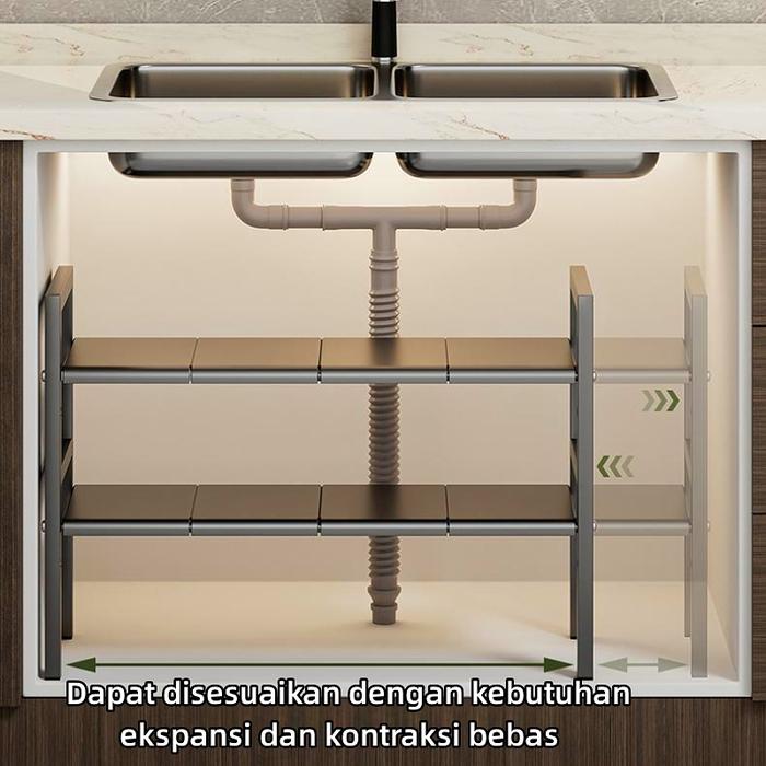 Rak Kolong Dapur Stainless Steel Panci Bawah Wastafel Dapur 2 Susun Serbaguna - Kitchenware - 1 Lanpisan - 4 Papan