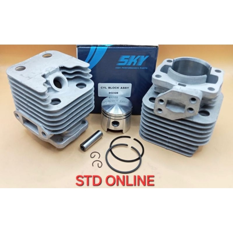 328 cylinder blok + piston + ring set model old rata untuk mesin tong rumput 2tak