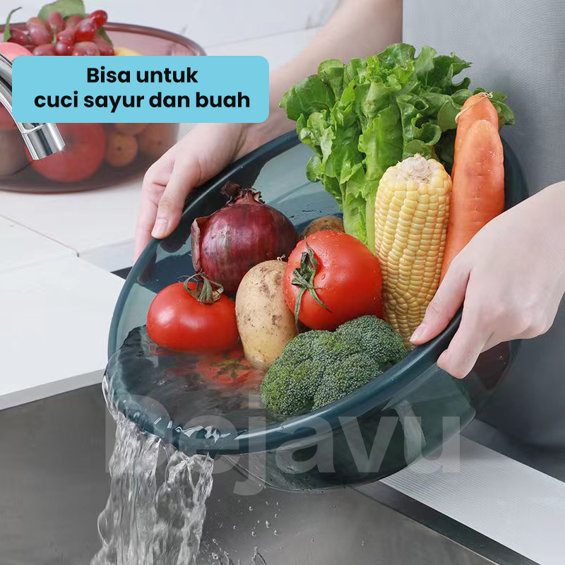 Dejavu Baskom Plastik Transparan Tempat Sayur Buah Wash Clear Basin Bening Baskom Air Cuci Wastafel HRH960
