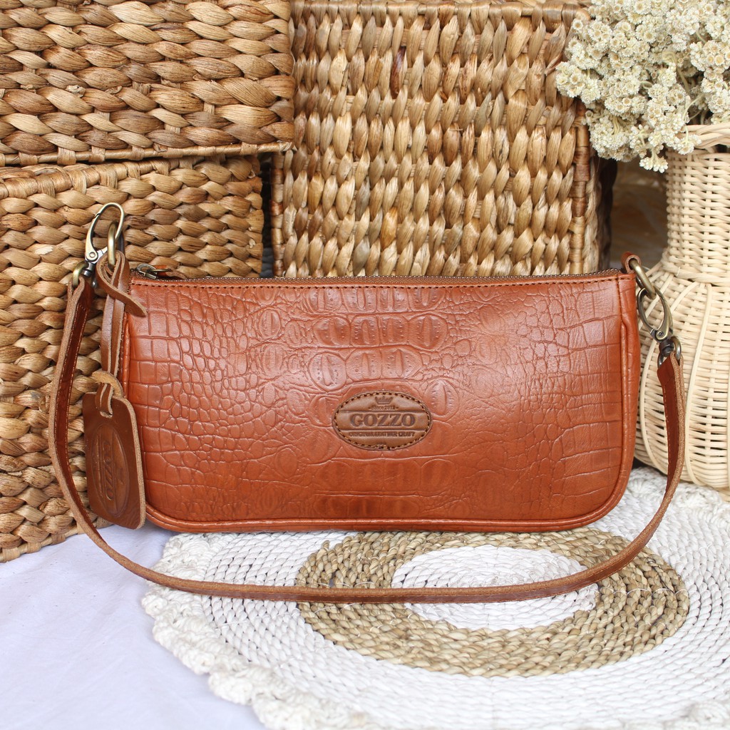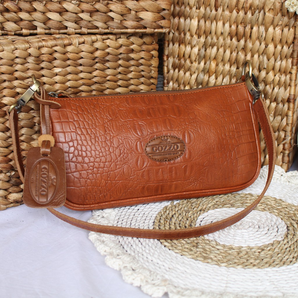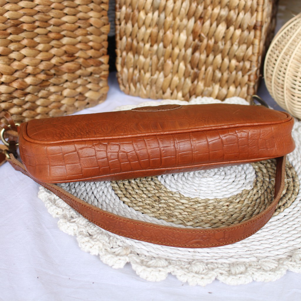 Tas Tangan / Clutch Wanita Kulit Asli Embos Croco Nebula Havana/ Free Gravir Nama Di Tas