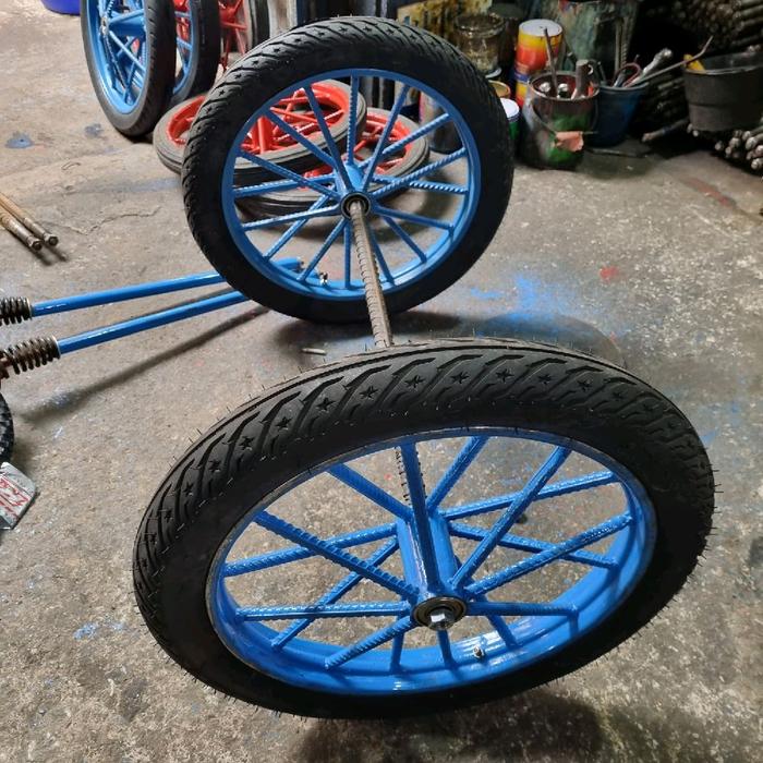 Roda Gerobak Ring 17 Inch Ban Baru 1Set Roda Gerobak Dorong - Lebar Gerobak 40Cm Panjang As 66Cm